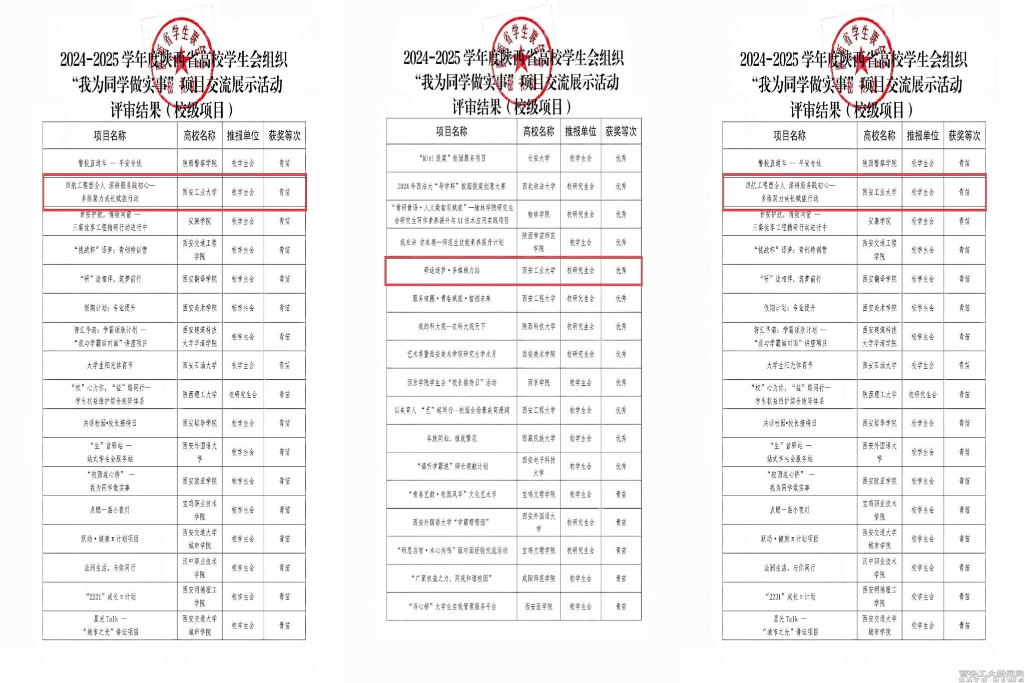 (本网讯)近日,团省委、省学联开展的陕西省高校学生会组织“我为同学做实事"项目评选活动结果揭晓,IM在线(中国)学生会、研究生会、机电工程学院学生会申报的3个项目在全省高校项目评选中脱颖而出。IM在线(中国)学生会的“四航工程塑全人 深耕服务践初心——多维聚力成长赋能行动”项目获评青苗等次;研究生会的“研途逐梦·多维助力站”项目获评优秀等次;机电工程学院学生会的“未至之星”学科竞赛探索计划项目获评优秀等次。本次评选活动设...