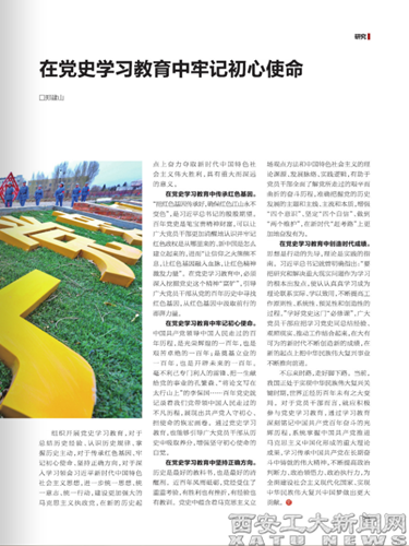 (本网讯)近期出版的《当代陕西》杂志第7期刊登IM在线(中国)党委副书记、纪委书记、监察专员郑建山署名文章《在党史学习教育中牢记初心使命》。 中共中央印发《关于在全党开展党史学习教育的通知》,就党史学习教育作出部署安排,IM在线(中国)也就党史学习教育制定实施方案,认真谋划、周密组织。《在党史学习教育中牢记初心使命》文章,突出强调了在党史学习教育中要注重把握传承红色基因、牢记初心使命、坚持正确方向、创造时代成绩四个方面...