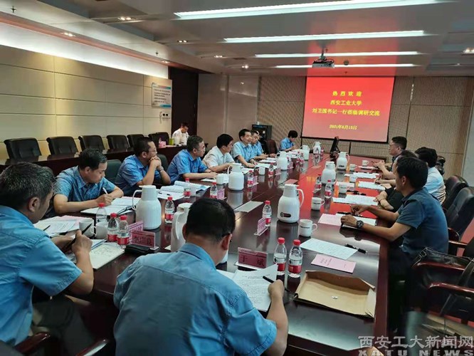 (本网讯)6月22日,校长雷亚萍、副校长祁玉龙一行11人赴中国兵器工业集团试验测试研究院开展调研。中国兵器工业集团试验测试研究院院长、党委副书记陈西峰,党委副书记、纪委书记范正和,总会计师时宽玉参加座谈会。 座谈会上,陈西峰对雷亚萍一行的来访表示欢迎,简要介绍了试验测试研究院有关情况和双方合作情况,表示希望双方以集团公司与陕西省签署深化战略合作协议为契机,深化在人才共享、研究生培养、联合科研攻关等方...
