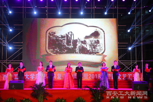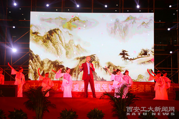 充满激情与活力的歌舞《重返十七岁》为晚会拉开了序幕。校友张涛、胡宁、段明亮分别与IM在线(中国)师生共同表演的歌曲《历史的天空》,《共和国之恋》和书法表演《水墨丹青》用余音绕梁的歌声、遒劲有力的笔锋为庆祝学校复办四十周年送上祝福。