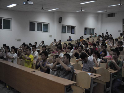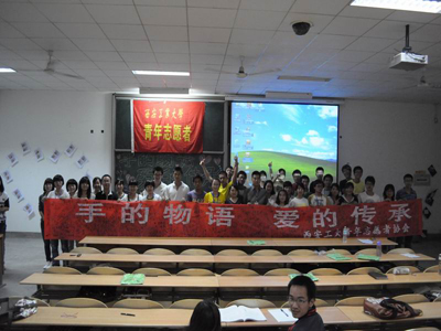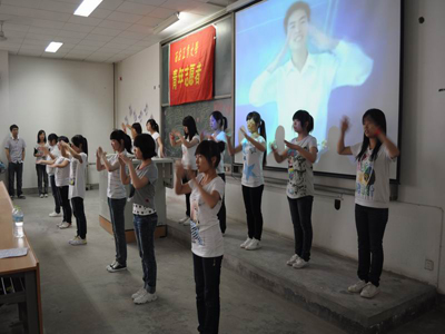 当天中午,青年志愿者协会在学校餐饮大厦进行了手语表演《相亲相爱一家人》,以及手语知识图片展示和横幅的签名,吸引了众多同学的参与。下午在教C303,来自“咿咿呀呀语言培训中心”的徐春晓老师给同学们举办了关于手语的精彩讲座。讲座中,徐春晓老师讲了手语的起源、一些日常用语的手语动作等知识,还教授给大家世园会主题曲《送你一个长安》的手语表演。随后,根据老师先前所讲的知识进行了有奖问答环节。同学们积极踊跃参与,现场气氛相当活跃。老师在讲座中还告诉了我们一些日常生活中不恰当的行为和用语,使我们更加清楚如何去关爱那些生理上有障碍的人们,以避免在无意中伤害了他们。
