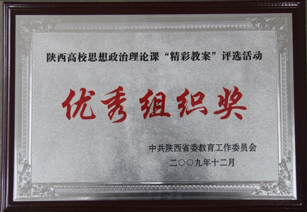 (本网讯)陕西省委教育工委于2009年5月开始在全省高校开展思想政治理论课“精彩教案”的评选活动。本次评选中,西安工大思政部共获“优秀教案奖”6项,分别是梁华平等人的《建设中国特色社会主义政治》、吕青等人的《世界的物质性及其发展规律》、孟文科的《反对外国侵略的斗争》、杨丽嫡的《珍惜大学生活 开拓新的境界》、黄秀琴的《追求远大理想 坚定崇高信念》、孟燕的《追求远大理想 坚定崇高信念》。同时,思政部在此次评选活动中获“优秀组织奖”,全省高校共有9所获此殊荣。