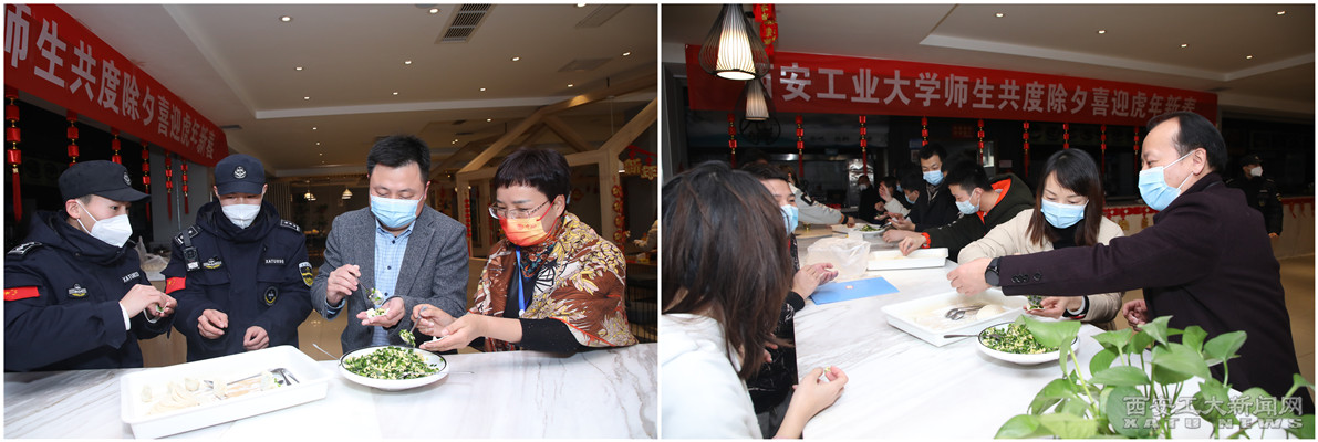 在温馨团圆的气氛中,在场师生一起包饺子,大家热情高涨,各显身手,其乐融融。一个个形态各异的饺子在师生手中成型,传达着对家乡的思念与新春的祝福,承载着大家对幸福圆满的美好希冀。