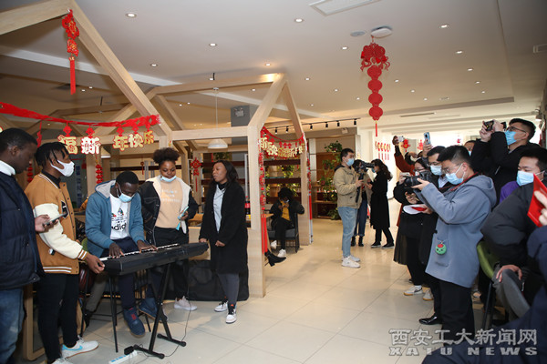 留校学生纷纷登台,以多样的才艺共贺新春。留学生Natasha等演唱的歌曲《It Ain’t Me》,将氛围引向热烈,赢得阵阵掌声;研究生卢仕强等人惟妙惟肖的剪纸表演,让同学们在中国传统民俗活动中学习了中国文化;本科生刘富山、寇佳铭的诗朗诵《祖国,你是一首蓬勃的诗》,满怀深情、豪情万丈,让在场师生眼眶湿润、胸怀激荡。