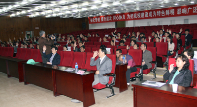 段小存总会计师在会上报告了学校2011年度学校财务决算情况、“三公经费”支出情况以及2012年度学校财务预算情况。