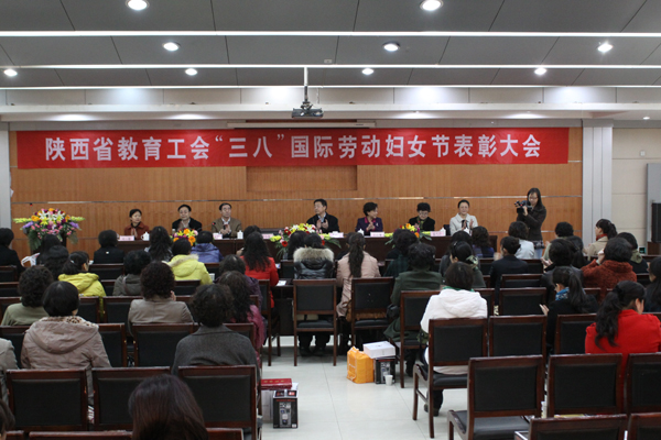 (本网讯)3月4日上午,陕西省教育工会庆祝“三八”国际劳动妇女节暨表彰大会在西安邮电学院长安校区召开。 陕西省总工会副主席、陕西省教育工会主席李向柱,陕西省总工会副主席王淑琳,省教育工会常务副主席张敏出席大会并讲话。会议由省教育工会女工委主任、IM在线工会主席徐雪芹主持。
