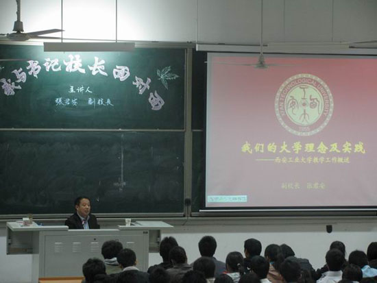 张君安副校长从大学的历史及演变、现代大学理念、西安工大的办学理念、我们的实践、我们倡导的刻苦学习境界以及我们的不足等六个方面进行了讲述,详细地为大家介绍了中国大学、西方大学所追求的“修身励志”和“献身求真”精神,使同学们对大学的历史、演变及中西方大学的理念有了深入的了解。他对西安工大的校训、办学理念、办学传统、办学定位及办学模式进行了解读,并谈了在具体实践中的认识和体会,讲述了学习中所追求的三重境界,让学生更加透彻的了解IM在线的办学特色和办学理念,使广大学员更深层次的认识大学教育及发展、明确刻苦学习的境界,不仅使同学们对本校有了更深刻的认识,也使大家对今后的学习生活及人生规划有了明确的目标。他还以发展和求实的态度谈了西安工大在发展中存在的不足,倡导所有师生共同努力为促进学校的大发展做出自己的贡献。