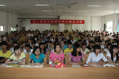 青年教师讲课比赛分校、院两个阶段举行,本次举行的是校级比赛的总决赛,由校级比赛的一等奖获得者:人文学院的徐光明、光电学院的刘蓉、理学院的高梅参加总决赛。比赛由授课、答辩和专家点评三个环节组成,经过比赛评委会投票确定最终高梅获得本届讲课比赛总决赛的第一名。