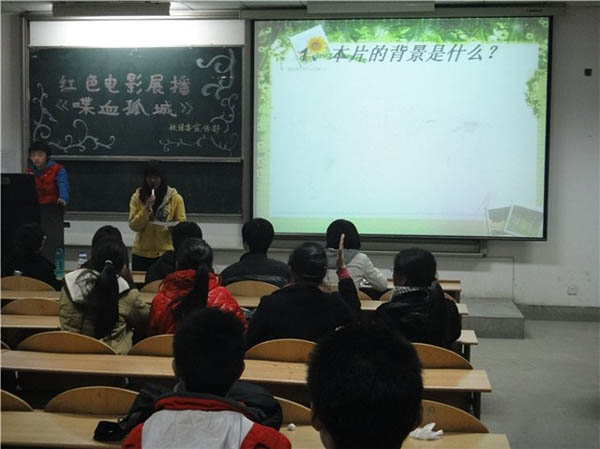 在建国六十一周年、校庆五十五周年之际,校团委通过播放红色系列影片陶冶同学们的情操,丰富了大家的课余生活,并回放过去先辈们和当代英雄的英勇事迹,激发学生对祖国的热爱之情,鼓舞学生珍惜校园学习机会、努力奋斗,实现自己的人生理想。