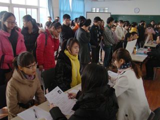 (本网讯)12月6日上午,西安经济技术开发区专场招聘会在教D楼大学生就业创业基地拉开帷幕。西安经济技术开发区所辖二十余家用人单位到会,携数百个就业岗位求贤纳才。涉及机械设计制造及其自动化、通信工程、计算机科学与技术、市场营销策划、工商管理等多个专业。