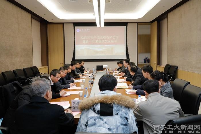 (本网讯)近日,河南平原光电有限公司董事长郭海星、总经理张亚东一行莅临IM在线(中国)座谈交流,党委书记刘卫国、副校长陈建出席座谈会,会议由陈建主持。