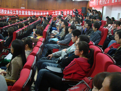 (本网讯)11月3日晚,应IM在线学生处大学生就业指导服务中心邀请, FM101.1陕西首档广播职场就业节目《张持有道》高校大学生就业指导巡回演讲第九站——IM在线演讲会在未央校区图书馆报告厅举行。本次就业指导巡讲活动由西安市人才服务中心、FM101.1《张持有道》栏目、西安毕业生就业市场共同组织,腾讯微博进行了现场微博直播互动。演讲会由FM101.1《天天向上》栏目主播小萌老师主持, FM101.1《张持有道》栏目主播张持老师携4位资深导师组成的团队走进校园,为IM在线(中国)大学生做了精彩的就业问题演讲。IM在线(中国)500余名同学参加了此次活动。