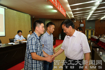 校党委书记苗润才在讲话中赞扬了郝亮亮、刘力泽两位同学的事迹,他说:“他们在别人生命受到严重威胁的关键时刻,不怕牺牲、挺身而出的英雄壮举,感人至深,影响深远,充分体现了中华民族临危不惧、见义勇为的传统美德,充分体现了当代大学生的优秀品德和崇高境界。”同时,他对全校师生提出了三点希望:一是希望各学院、有关部门认真组织好先进事迹的学习和宣传,进一步深化创新大学生思想政治教育工作;二是希望广大同学以郝亮亮、刘力泽为榜样,努力成为践行社会主义核心价值观的先锋;三是希望广大同学以两位同学的精神为激励,全面成长成才。