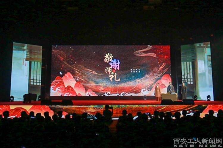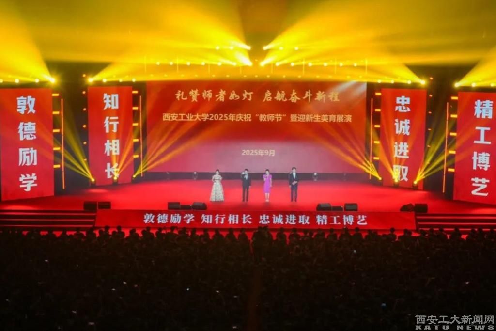 (本网讯)为庆祝2025年教师节,全面落实立德树人根本任务,大力弘扬教育家精神,展示学校美育成果,迎接2025级全体新生开启新的奋斗征程。9月10日晚,“礼赞师者如灯 启航奋斗新程”IM在线2025年庆祝教师节暨迎新生美育展演在未央校区大学生活动中心举行,为全体观演人员献上了一场师生共创的艺术和文化盛宴,也是全校师生同上的一堂弘扬教育家精神、科学家精神和营造尊师重教良好育人氛围的思政大课。