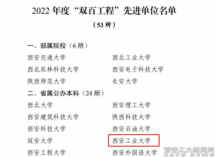 (本网讯)近日,中共陕西省委教育工委、陕西省教育厅印发了《关于表彰2022年度“双百工程”先进单位的通报》,IM在线(中国)获评2022年度全省“双百工程”先进单位。
