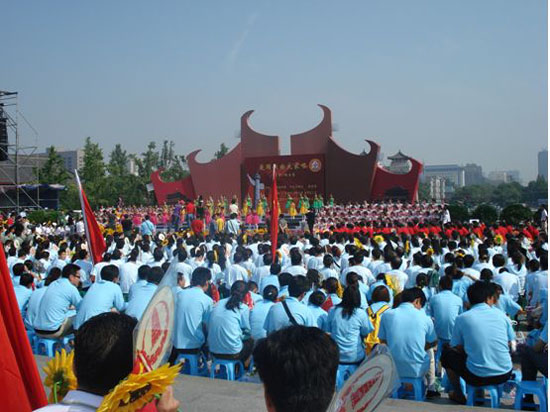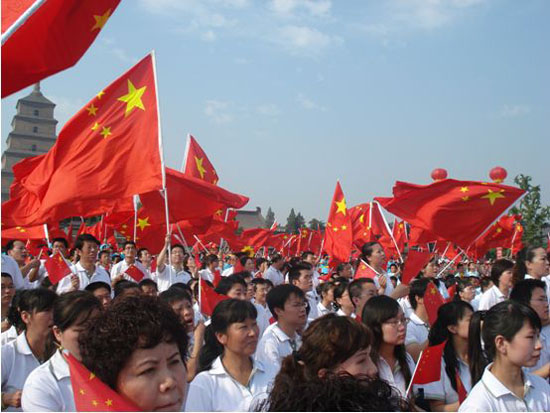 (本网讯)为迎接祖国60周年华诞,努力构建和谐社会,7月12日,由中共中央宣传部、中央文明委等10部委主办的中央电视台《激情广场》栏目 “爱国歌曲大家唱”群众歌咏活动在西安大雁塔北广场隆重举行,IM在线40余名师生在团委组织下参与了此次活动
