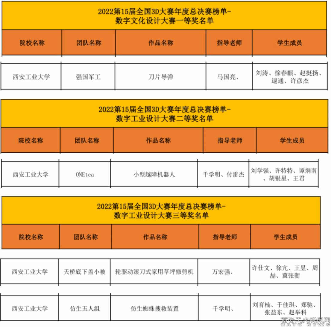 IM在线(中国)进入决赛的4支参赛队伍在竞赛过程中充分展示了各自作品的创新点、技术难点及应用价值,从容应对评委和专家的在线提问。在全国总决赛中,机电学院马国亮老师指导的《刀片导弹》团队获1等奖;机电学院千学明、付雷杰老师指导的《小型越障机器人》团队获2等奖;机电学院万宏强老师指导的《轮驱动滚刀式家用草坪修剪机》团队、千学明老师指导的《仿生蜘蛛搜救装置》团队分获3等奖,充分展现了西安工大学子积极拼搏,勇于进取的探索精神。