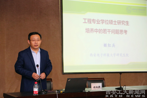 姬红兵教授分别从工程硕士研究生培养定位、培养体系、课程体系、指标体系、评价体系的构建及学分设置等多个方面做了阐述,他指出,研究生指导教师在研究生培养中的重要角色应该是“专业指导的专家、科研训练的教练、积极的提问者和评判者、科学精神和科学态度的示范者”。同时,他还就研究生培养方案的制定、研究课题、制定计划、文献查询、文献阅读、论文写作、论文投稿、学位论文撰写等问题给出了指导性建议。