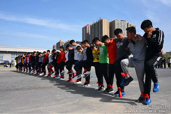 “环校跑”活动结束后,“多人多足”比赛在未央校区田径场举行。经过两轮激烈比赛,最终建工学院战狼队获冠军,材化学院二队获亚军,艺传学院二队获季军。