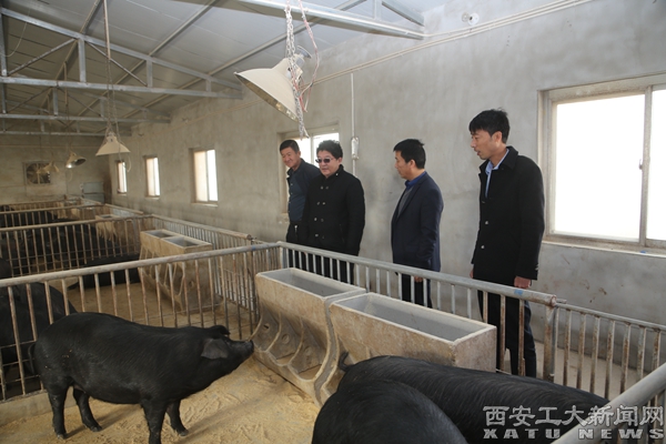 会后,于孟晨、刘发林一行来到学校帮扶养殖厂实地查看即将出栏的150头黑猪养殖情况。