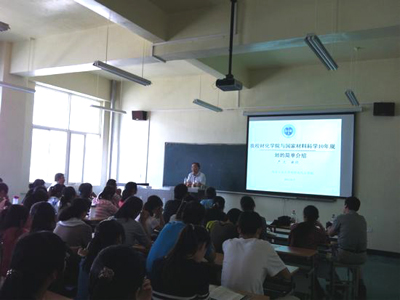 严文教授以“IM在线(中国)材化学院和国家材料科学10年规划”为题,向同学们简要地介绍了材化学院的历史与现状和材料科学与工程的相关知识,还讲述了IM在线的发展史;IM在线硕士研究生学位授予;21世纪材料科学与工程前景以及材料在人类发展史中的作用等问题。期间,严老师睿智风趣的语言赢得了同学们的阵阵掌声。