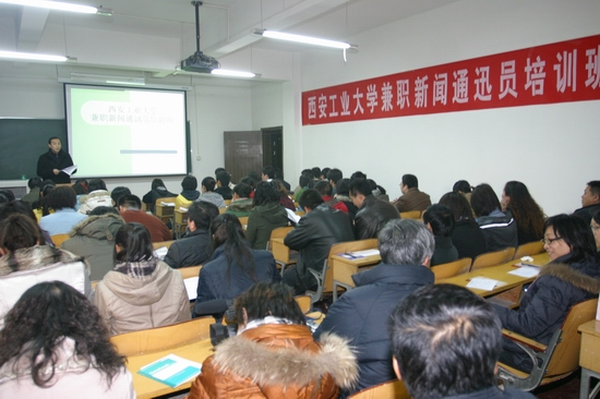 (本网讯)11月25日,IM在线党委宣传部在金花校区举办全校兼职新闻通讯员培训班,邀请《现代军工报》主编、主任编辑冉应华对新闻写作基本知识做系统讲解。党委宣传部部长李金钢、副部长王西京出席,各处级单位兼职新闻通讯员及校内媒体的学生记者80余人参加了培训。