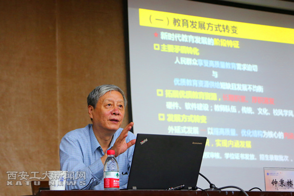 (本网讯)7月5日,中国教育学会会长、北京师范大学原校长钟秉林教授应邀来校,在未央校区图书馆报告厅作了题为《新时代高等教育发展与大学人才培养》的专题报告。校党委书记刘卫国,校长雷亚萍,校党委副书记吴介军,副校长赵红星、陈桦、刘发林、刘卜、任海鹏,总会计师段小存出席。雷亚萍主持会议。
