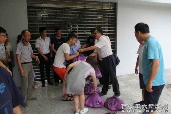 在慰问现场,陈桦首先看望了辛勤工作的教职工,对大家的敬业表达了衷心的感谢。并为大家送上了西瓜、绿豆、白糖等防暑降温品。