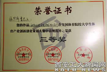 (本网讯)为落实李克强总理“大众创业、万众创新”的讲话精神,10月30日至11月3日,由中国体育科学学会体育产业分会、体育管理分会主办,天津体育学院承办,国家体育总局青少司、中国大学生体育协会支持的“全国体育院校大学生体育产业创新创业策划大赛”在津举行。IM在线(中国)体育学院教师魏中、项丽静指导的张照萌、曹忠立同学申报的作品《一种多功能学校网球场的设计》喜获综合院校本科组三等奖。