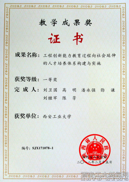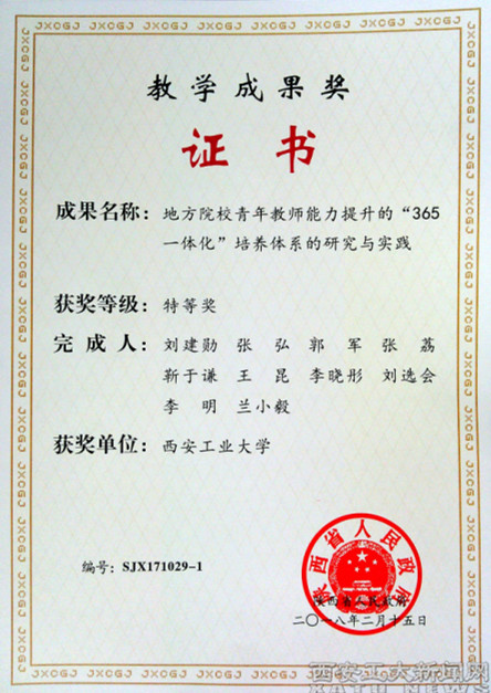 在此次获奖项目中,由刘建勋教授主持的“地方院校青年教师能力提升的“365一体化”培养体系的研究与实践”获得教学成果特等奖;由刘卫国主教授持的“工程创新能力教育过程向社会延伸的人才培养体系构建与实施”获得教学成果一等奖;由于孟晨教授主持的“坚持军民融合之路培养红色创新人才 “2+2+2”培养体系创建与实施”,何晖教授主持的“创新实践教学设计实施“院+”培养模式提升土木工程专业人才培养质量”,以及由许世军教授主持并与西安工程大学合作完成的“兴趣布点的地方高校公共基础物理“一顶、四层、两翼”课群教学模式构建”等3项成果获得教学成果二等奖。