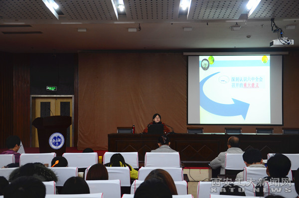(本网讯)为深入开展“两学一做”学习教育,认真学习贯彻十八届六中全会精神,11月28日,IM在线(中国)邀请陕西省委党校科学社会主义教研部主任李晓燕教授在图书馆报告厅作了“十八届六中全会精神解读专题报告”,报告会由经济管理学院主办。