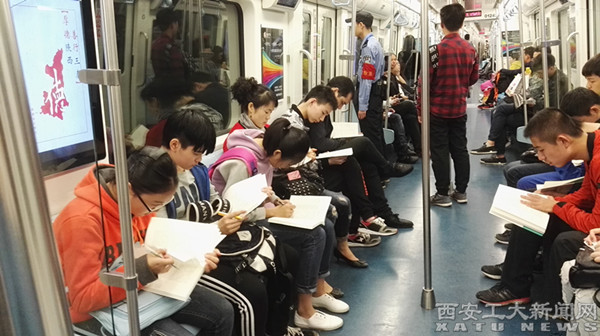 作为城市一种交通工具,地铁受到越来越多人们喜爱。倡导中学生在地铁阅读,也是附中培养学生阅读习惯的延伸。此次地铁阅读体验活动在西安地铁一号线展开,行程分为A、B两段:A段为从纺织城至后卫寨站,时长45分钟;B段为后卫寨再至通化门站,时长30分钟。在这两段时间内,同学们集中在一节车厢,在移动环境下阅读老师的指定书目。