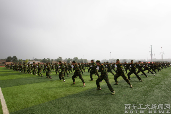 在庄严的升国旗、迎团旗仪式之后,2016级学生军训汇报演出正式开始。健美操方队、军体拳方队、擒敌配套方队、战术方队等科目逐一登场表演,赢得了领导及现场观众的阵阵掌声和好评。