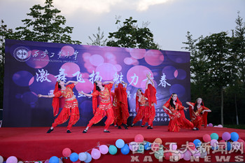 (本网讯)青春活力,激荡校园,舞动精彩,魅力无限。6月7日晚,由校团委主办,经济管理学院、大学生艺术团承办的“激舞飞扬,魅力青春”——IM在线校园舞蹈大赛在博苑广场火热举行,500余名师生观看了比赛。
