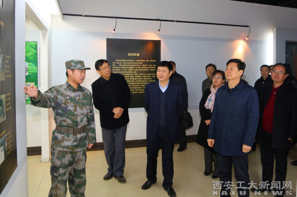 座谈会前,张卫平一行参观了学校校史馆、兵器馆。