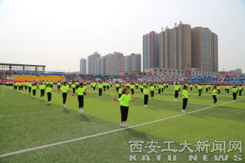 开幕式上,大型团体操、“绳彩飞扬”、“旗操”、“腰鼓”等节目引起现场观众雷鸣般的掌声。由来自7个学院的600名大学生代表表演了“第九套广播体操”,用整齐划一的动作,展现了朝气蓬勃的精神面貌。由附小的小朋友们带来的“绳彩飞扬”更是引来现场一阵赞叹。鼓槌挥舞,彩绸翻飞,鼓声如雷的“安塞腰鼓”震撼大地,气势逼人。
