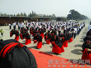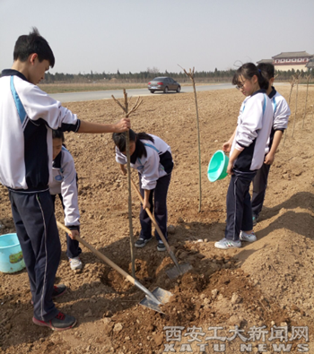 本次活动主要有植树、参观博物馆、学习汉代礼仪三个活动环节。植树时,同学们三人一组,挖土、拿树苗、浇水,分工明确,井然有序。同学们还在自己亲手种的树苗上挂上了心愿卡,小小的樱花树苗在同学们的精心呵护和真心祝福中更具生命活力。