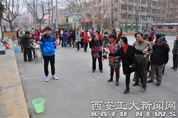 同时,由离退休处组织,退休女职工在金花校区欢聚一堂,也开展了纪念“三八”国际劳动妇女节趣味活动。活动项目分为飞镖赛和乒乓球投球赛,近200余人参加,气氛高涨。