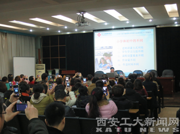 讲座分为初中家长专家讲座和高中家长专家讲座两场。初中场由陕西省心理学会理事、陕西省家庭教育研究会理事吴海峰主讲。吴海峰以“让爱到达”为主题从家庭教育的重点、初一学生的身心特点、父母在家庭教育中易犯的错误及应对方法等与初一学生家长进行了家庭教育问题的探讨。高中场由国家知名二级心理咨询师李娟主讲,主题为“家长智慧讲堂”,她话语平易,深入浅出,从高一学生的心理特点、家庭教育的方式、解决问题的步骤等方面,与高一学生家长进行了互动体验式的讲座。