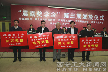 (本网讯)10月24日,由陕西省原省长程安东发起的公益助学项目“晨露奖学金”第三期发放仪式在IM在线(中国)未央校区报告厅隆重举行。来自西北农林科技大学、西安理工大学、西安科技大学及IM在线(中国)共80名研究生获得“晨露奖学金”资助。校党委书记赛云秀主持了仪式。