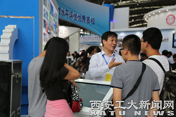 博览会期间,校长苗润才、副校长雷亚萍亲临现场指导,耐心细致的回答学生家长的咨询,并接受陕西日报、陕西电视台、西部网等主流媒体的采访。校党委副书记于孟晨全程关注并现场指导展位布展工作。