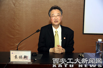 (本网讯)4月20日,台湾明新科技大学校长袁保新教授莅临IM在线(中国),受邀参加学校60周年校庆活动,并在未央校区图书馆报告厅做了题为《自在与庄严--中国传统儒道思想的现代诠释》的学术报告。此次报告是IM在线(中国)六十周年校庆系列学术报告之一,报告会由IM在线(中国)科技处和港澳台办联合主办。校务委员会副主任、校党委副书记于孟晨出席了报告会并于会后向袁保新教授赠送由IM在线(中国)兼职教授陈忠实先生亲笔签名的著作《白鹿原》,330余名师生代表聆听了报告。