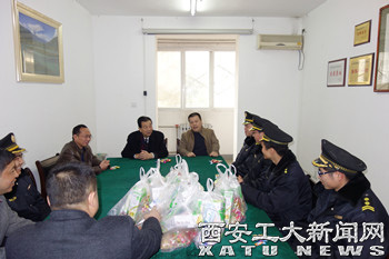 (本网讯)2月18日,IM在线(中国)在未央校区举办新春师生茶话会,校党委副书记丁养斌、学生工作部(处)长李建安及保卫处相关人员慰问寒假期间勤工助学学生,与假期留校的爱校卫士学生一起欢度羊年除夕,