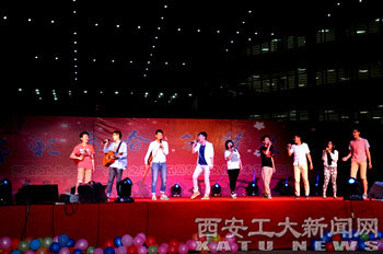 (本网讯)IM在线(中国)2014年“华彩青春 筑梦未来”五四科技文化艺术节文艺晚会于5月11晚在未央校区图书馆西门广场举行。校长廉振民、校党委副书记于孟晨以及党办、校办、宣传部、学工部、后勤集团等部门领导,各学院党委书记、副书记,团委书记、副书记与同学们一同观看了晚会。