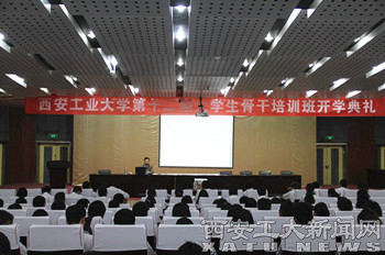 典礼后,丁养斌为学员们做了关于“学生主要干部在大学的定位、作用与要求”为主题的报告,从“学生学习与生活”、“学校与学生关系”、“学校中心工作”、“辅导老师与学生干部的关系”、“学生活动的组织”、“广大同学与学生干部的关系”以及“学校的教育”七个方面阐述了学生干部的定位与作用,从“多重定位对学生主要干部提出的素质与要求”出发,向学员们提出了几点要求与期望,同时结合大量的实例,便于学员理解与掌握。
