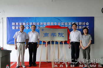 (本网讯)近日,陕西省独立学院经管类专业实验室建设研讨会暨IM在线北方信息工程学院商学院揭牌仪式在北信学院举行。院长张君安、党委书记简林根、副院长薛虹、党委副书记杨灏、西北大学出版社副总经理张萍出席。