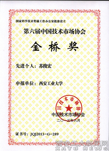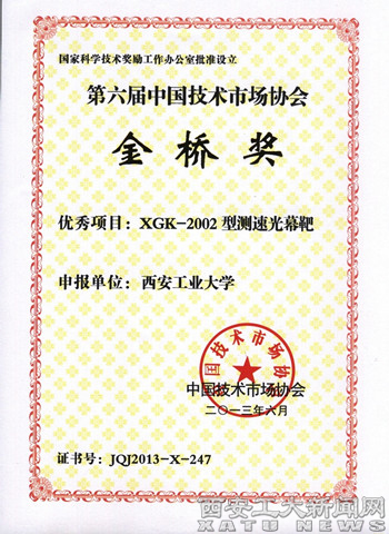 (本网讯)近日,第六届“金桥奖”颁奖大会在陕西杨凌举行。科技部原副部长、中国技术市场协会会长韩德乾,杨凌示范区党工委书记、西北农林科技大学党委书记梁桂等出席颁奖大会。中国技术市场协会第一副会长范肖梅主持颁奖大会,600余名获奖单位与个人、项目代表参会。IM在线(中国)倪晋平教授主持完成的“XGK-2002型测速光幕靶”项目荣获第六届“金桥奖”先进项目,苏俊宏教授荣获第六届“金桥奖”先进个人。