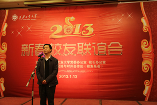 校友总会理事长、校长廉振民首先讲话,向各位校友介绍了“十二五”开局之年学校在人才培养、科学研究、社会服务等方面取得的主要成绩,对广大校友们长期以来给予母校的大力支持表示衷心地感谢,并代表学校向各位校友致以新年的问候。