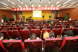 (本网讯)12月6日下午,省委宣讲团党的十八大精神报告会在IM在线未央校区图书馆报告厅举行。省委宣讲团成员、省委党校副校长郑志飚为IM在线(中国)师生作了精彩的宣讲报告。校党委副书记于孟晨主持了报告会。