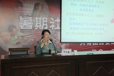表彰结束后,人文学院郄远春博士为全校辅导员及学生代表做了《文化心理与语言禁忌》的专题讲座,她从语言禁忌的特点,语言禁忌的类别,导致人们语言犯忌的几种情况,如何回避语言禁忌四个方面阐述了日常生活中需要注意的语言禁忌,并给大家讲述了人们通常采用的四种委婉说法。此次讲座是学工部开展的中国文学与文化系列讲座之一。
